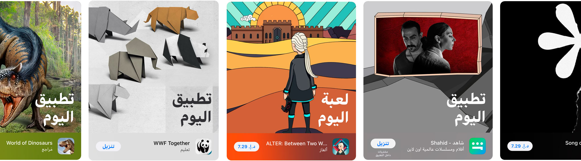 قصص أصلية بأقلام فريق تحريرنا تقدم لك كل ما تبحث عنه من عروض افتتاحية عالمية وحصرية وصولاً إلى مقابلات حول ما يجري وراء الكواليس. انقر على تبويب "اليوم" وتعرف على المطورين ومصممي الألعاب المميزين، وتعرف على بعض التلميحات والحيل الذكية، أو اطلع على كيفية مساهمة التطبيقات في تغيير طريقة عمل الناس ولعبهم وعيشهم.