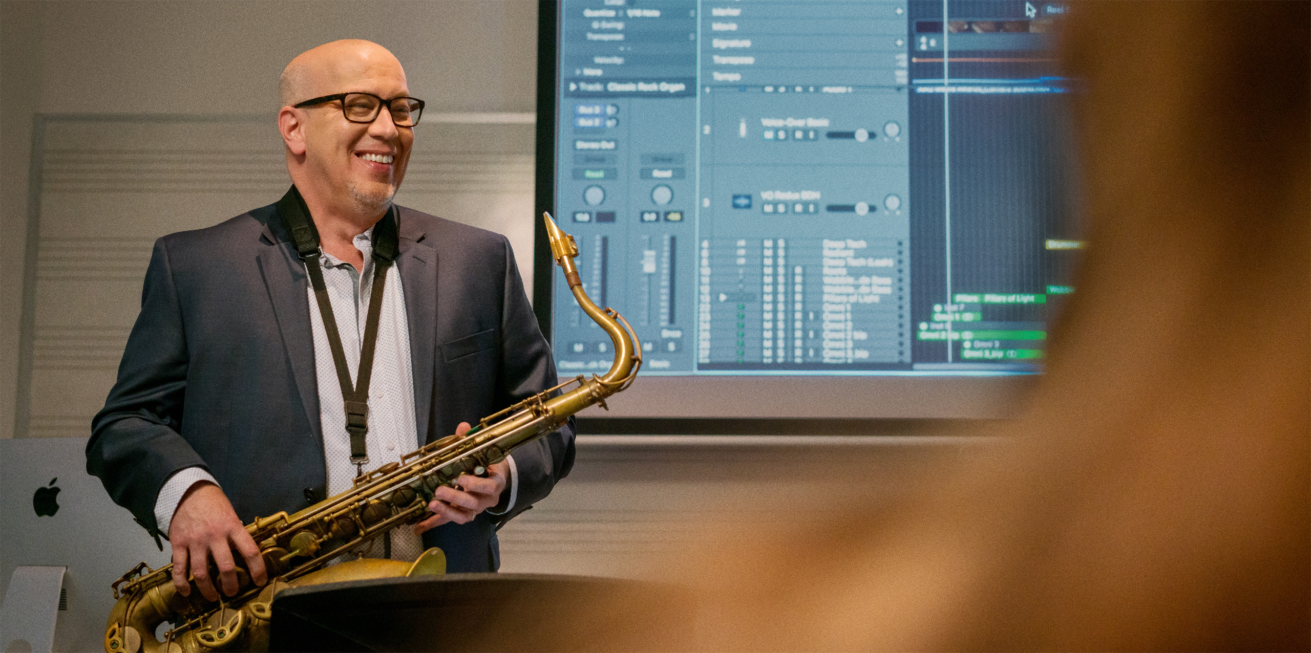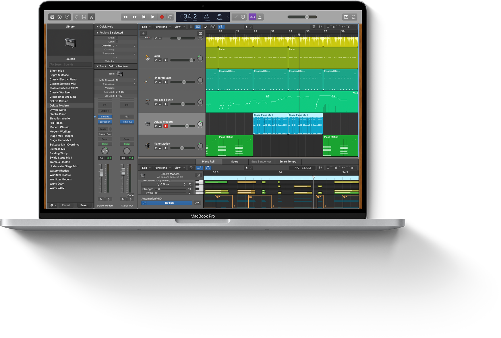MacBook Pro. The all-in-one professional tool Hughes trusts to prepare burgeoning creators and producers for successful careers. Logic Pro on Mac serves as the foundation for his entire music and sound design curriculum. Students learn to record, edit, and mix all kinds of music with a pro-level sonic palette — and create pro-level portfolios to prepare for the music industry.