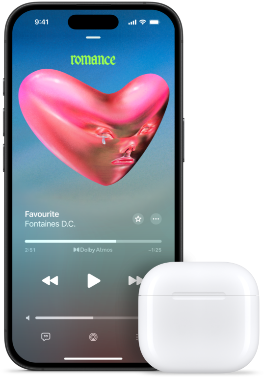 Personalized Spatial Audio with dynamic head tracking3 places sound all around you, creating a three-dimensional listening experience for music, TV shows, movies, games and more.
