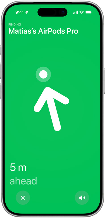 Charging case. Next-generation Ultra Wideband technology increases the distance of Precision Finding by 1.5x,9 so you don’t lose track of your AirPods.