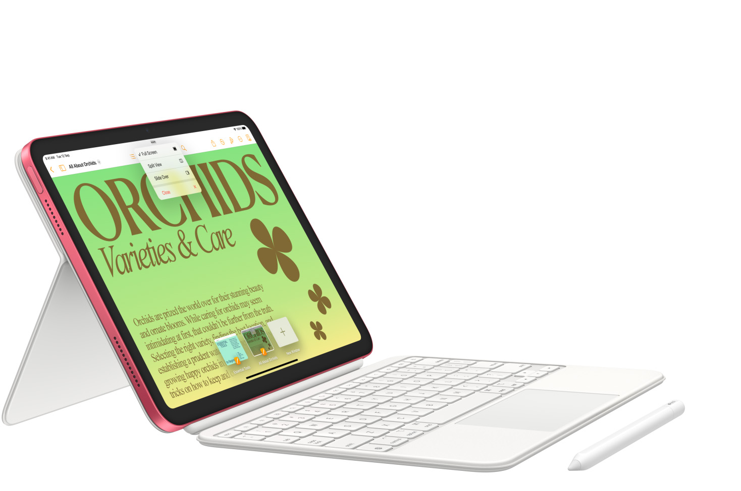 Draw, paint, and write with Apple Pencil. Type comfortably, use a trackpad, and enjoy content with the versatile two-piece design of the Magic Keyboard Folio.2 You can use familiar keyboard shortcuts or the click-anywhere trackpad. And get an incredible typing experience.