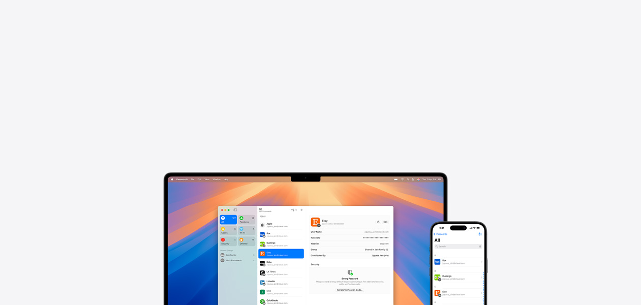 manage credentials across devices with iCloud and alerts you to