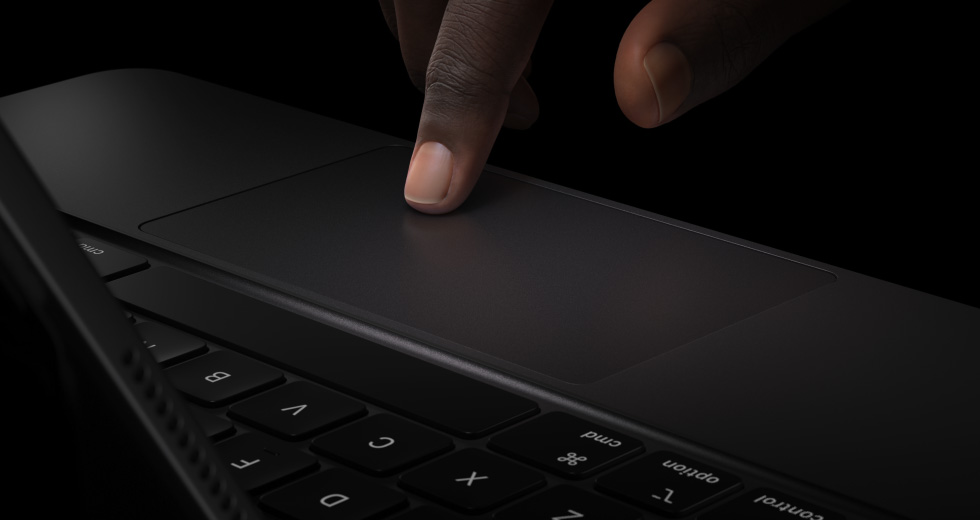 Magic Keyboard delivers an amazing typing and trackpad experience in a sleek, portable design with an aluminum palm rest.12 The keyboard includes a function row and a large glass trackpad with haptic feedback for precise work and Multi‑Touch gestures.