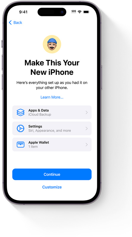Restore your device or set up a new one from your iCloud backup to seamlessly bring along all your photos, files, contacts, apps, settings, and more, so it looks just like your previous one.