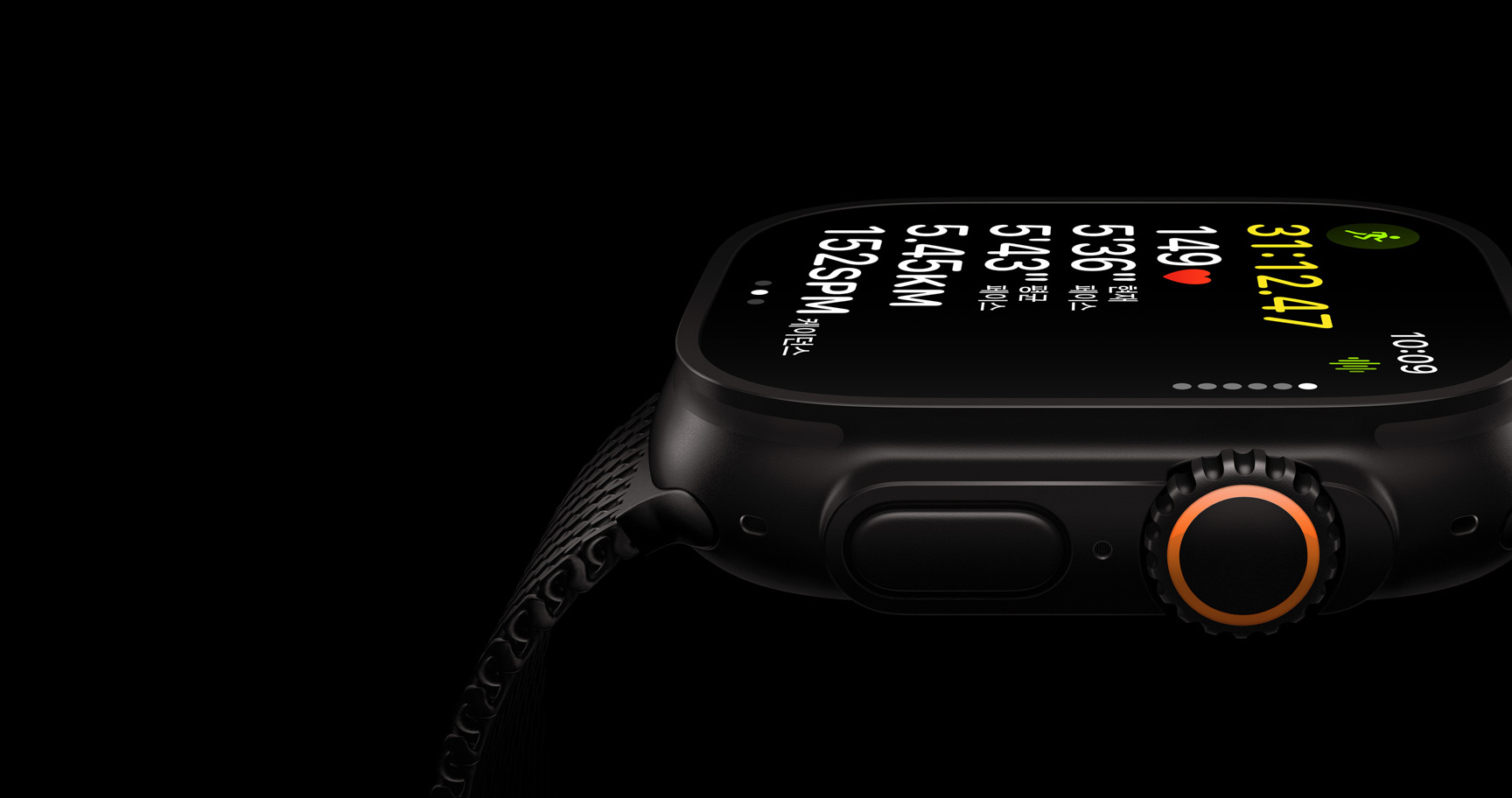 Apple Watch Ultra 3에 탑재된 센서와 앱은 밤이든 낮이든, 수시로 당신의 혈중 산소 포화도를 측정하는 것은 물론, 당신이 원할 때마다 그 자리에서 측정할 수 있게 해줍니다.16