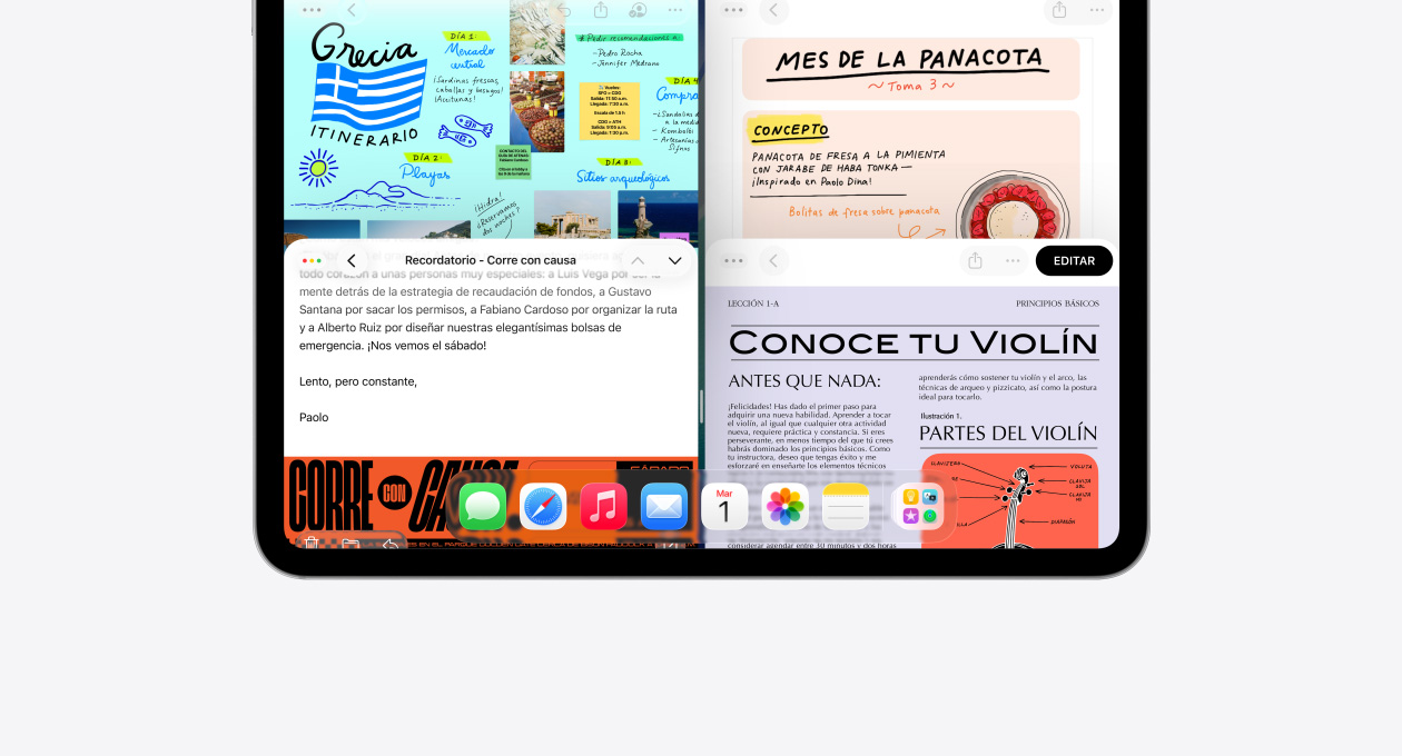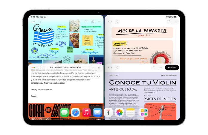 El nuevo e intuitivo sistema de ventanas del iPad te ofrece más poder y flexibilidad.
