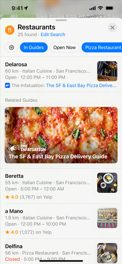 Guides help you find amazing things to see and do in cities around the world.3 Just tap the Explore Guides button to access nearly 1,000 expertly curated Guides, and find and save the ones that catch your eye. Curated Guides automatically update when new places are added, so you always have the latest recommendations at your fingertips. You can also create your own Guides and share them with friends and family.