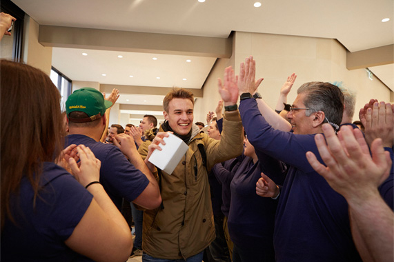 Apple opened its doors to customers today at new stores in Nanjing, Cologne and Miami, bringing Apple’s latest retail innovations to the heart of each city. More than 350 store employees welcomed thousands of customers at the grand openings, some queuing for days in advance.