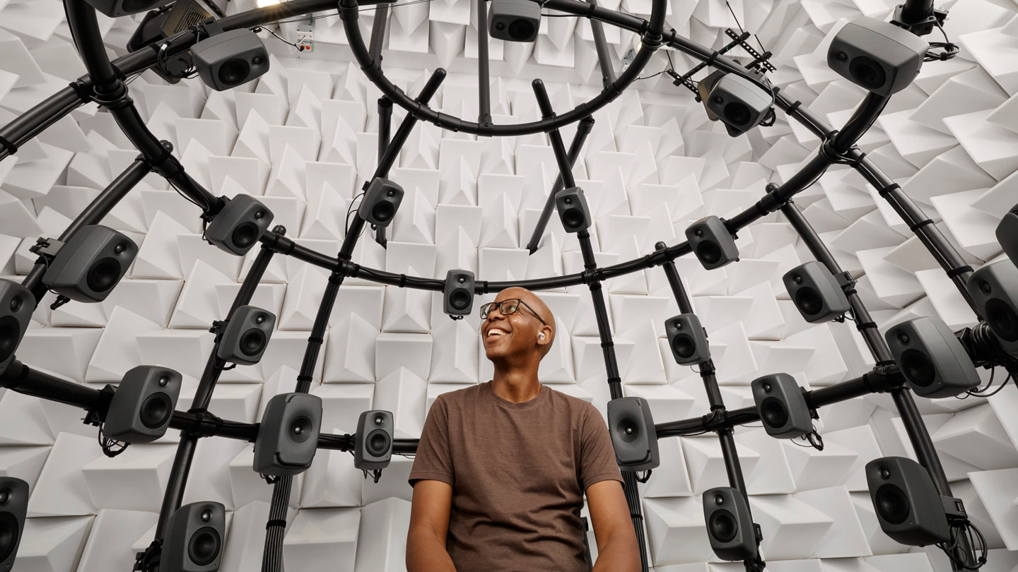 Apple’s state-of-the-art Audio Lab in Cupertino, California, supports the innovative work of its acoustic engineers. They use the lab to conduct user studies in various listening rooms and test new features in its anechoic chambers, which completely absorb reflective sounds and isolate external noise.
