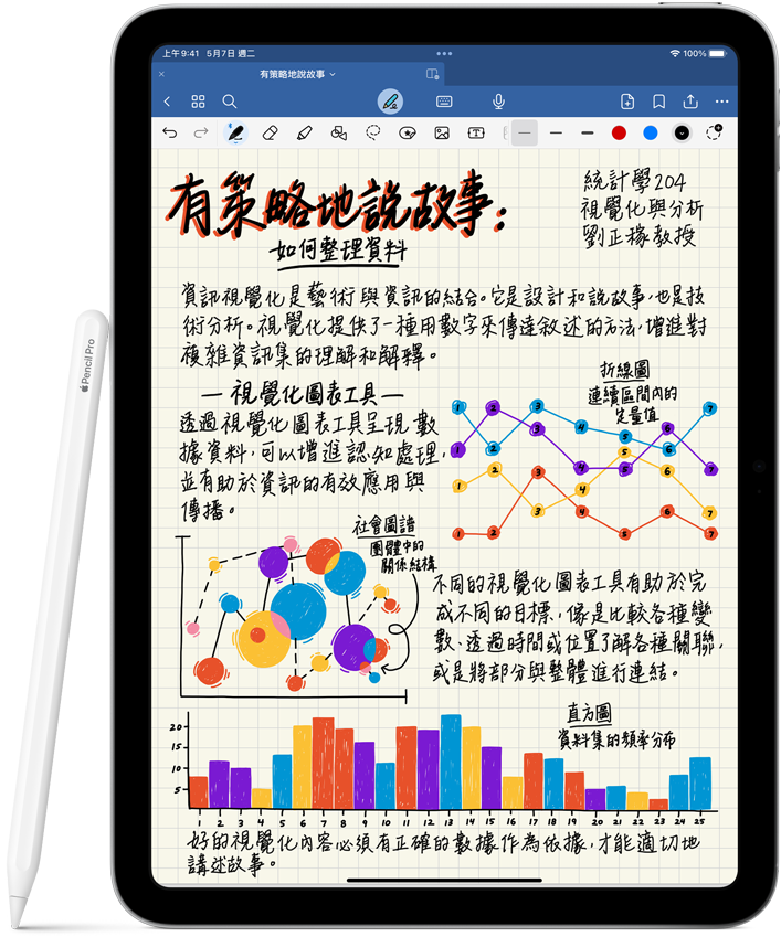 Apple Pencil 為繪圖、做筆記與標示文件的使用體驗,設下直覺易用、精準確實又