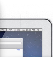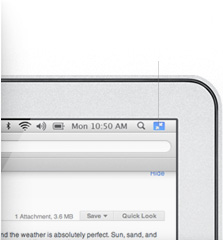 OS X Lion 把 Dashboard 變成全螢幕的應用程式,不但容易上手,瀏覽樂趣也更加分。Mail、iCal、Safari、Photo Booth、FaceTime、Preview 與其他內建應用程式,均配備了全螢幕顯示功能。而 iPhoto、iMovie、GarageBand、Keynote、Pages 與 Numbers 等,更在設計中優化了全螢幕狀態中的表現。所以現在 Mac 上的一切,都與你一同全面放大格局。