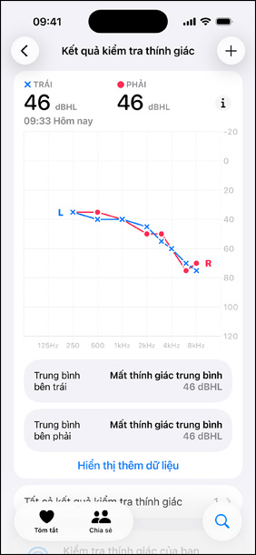 Riêng tư, an toàn và dễ quản lý. Toàn bộ kết quả Kiểm Tra Thính Giác của bạn đều được lưu trữ riêng tư và an toàn trong ứng dụng Sức Khỏe trên thiết bị của bạn. Bạn có thể thực hiện lại bài kiểm tra bất cứ khi nào bạn muốn, theo dõi khả năng nghe của bạn theo thời gian, tải về kết quả kiểm tra và đọc các bài viết hữu ích về sức khỏe thính giác.